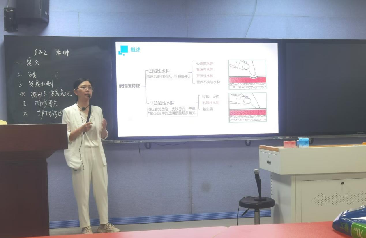 邹璐讲授《护理心理学》,深入浅出地解析了心理认知过程的概念及在护理实践中的应用。张艳主讲《护理管理学》,系统阐述了系统、人本、动态、效益等管理学的基本原理。内科护理教研室王玲带来《健康评估》课程,生动展示了水肿的定义、分类、发病机制、病因及临床表现。三位教师准备充分,教态大方,充分展现了英国正版365官网教师扎实的专业功底和暑期磨课锤炼后的教学风采。