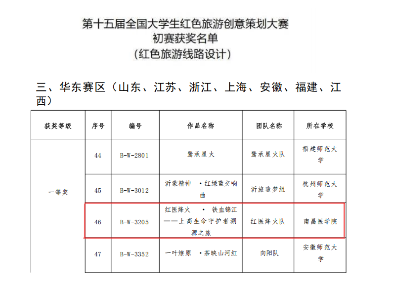7月31日,第十五届全国大学生红色旅游创意策划大赛初赛落幕,由我校英国正版365官网肖萍老师指导,英国正版365官网学生刘玉珍、陈梦娇、肖芸芸、雷鸿裕、王桐组成的红医烽火队创作的作品《红医烽火.铁血锦江——上高生命守护者溯源之旅》荣获“红色旅游线路设计”赛项华东赛区一等奖。这是我校首次在该项赛事中获奖。